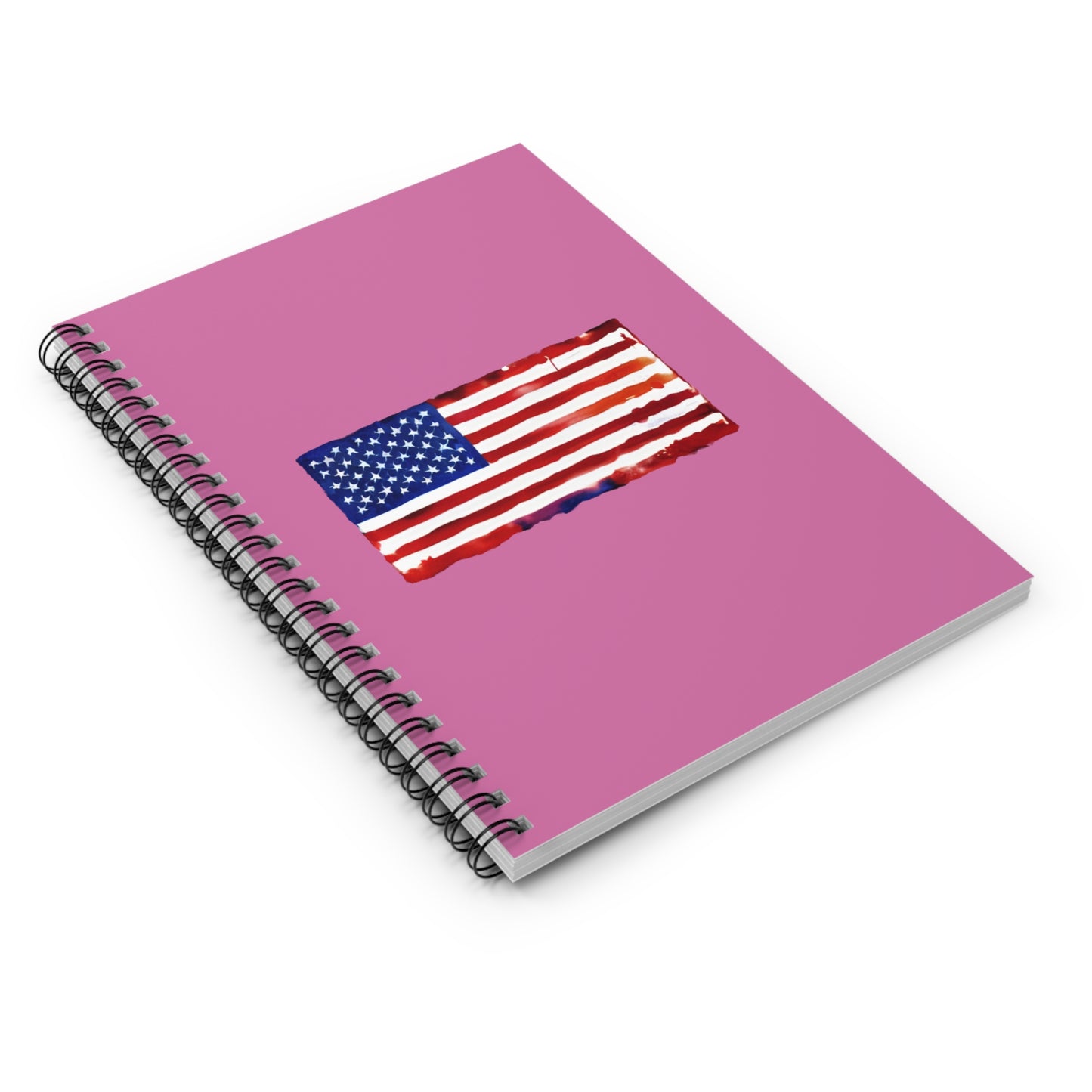 American Flag Watercolor, Spiral Notebook, Ruled Line, Pink Cover