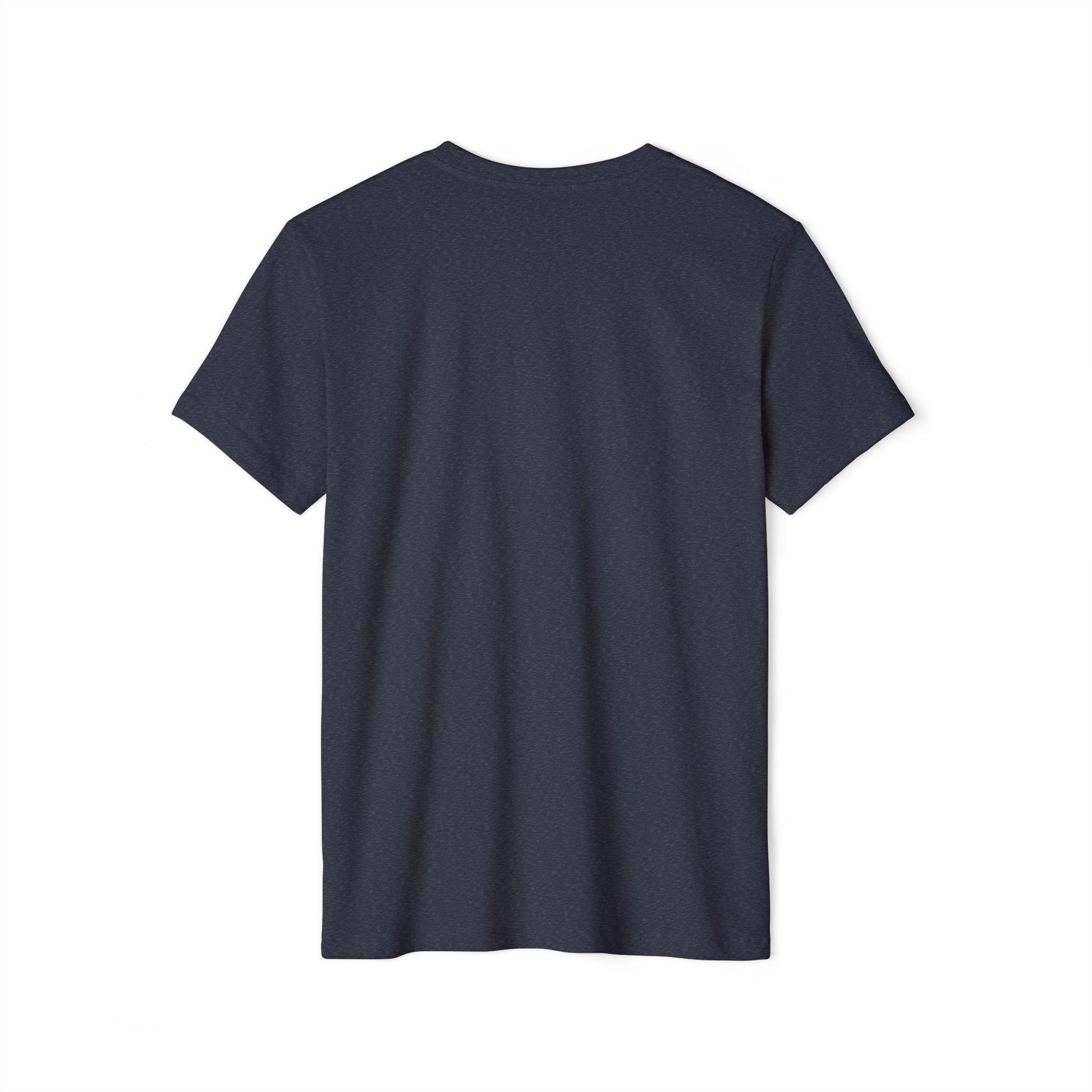 This recycled organic tee is made from 45% recycled polyester and 55% organic cotton, creating a very smooth fabric, perfect for vibrant designs. Athletic Heather has a different composition of 90% organic cotton and 10% recycled polyester. This t-shirt has a modern semi-relaxed fit with a trendy high neckline.